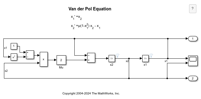 The vdp model represents the second-order Van der Pol (VDP) differential equation. For more information about the model, see Van der Pol Oscillator.