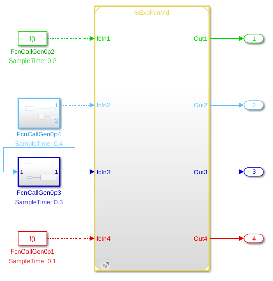 • If the OrderFunctionsByDependency parameter is set to 'on', blocks that have the same sample times are further sorted based on any relative data dependency of the functions to which the blocks are connected. See Execution Order for Root-Level Function-Call Inport Blocks.