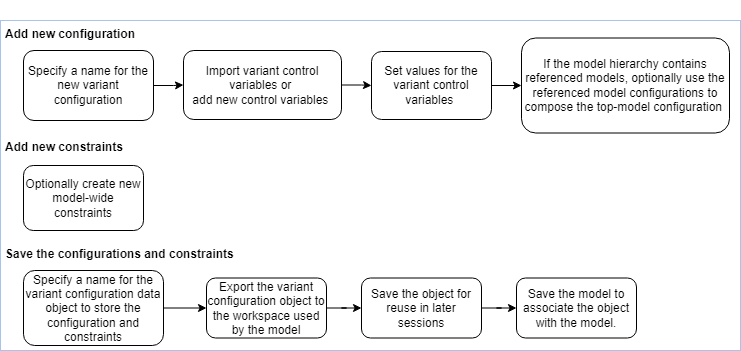This image shows the high-level workflow to create and save a new named variant configuration for a model.