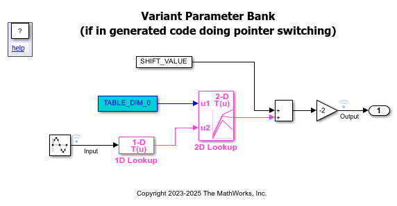 Simulink.VariantBank | Group all variant parameter values in structure array in generated code (Since R2023a) |