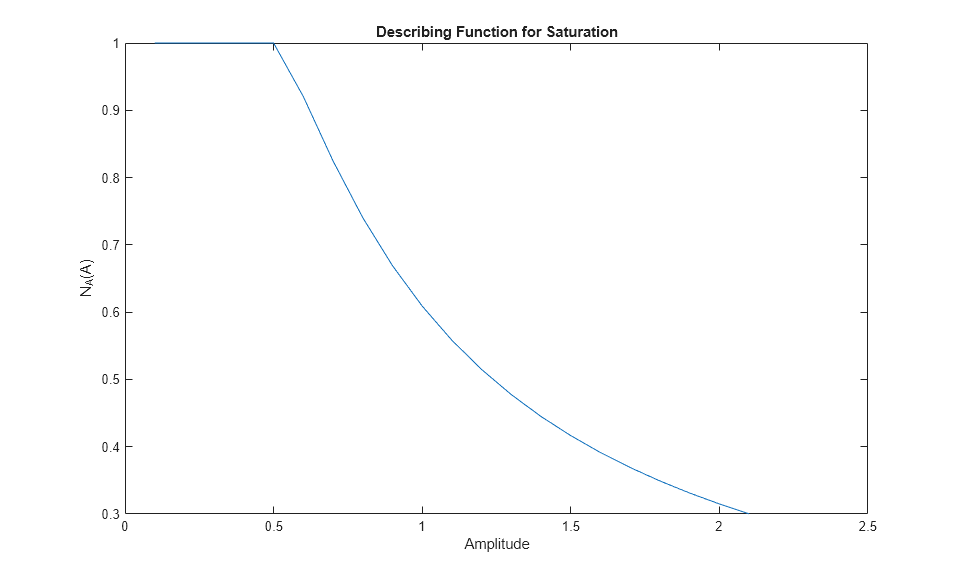 Compute and plot the describing function $N_A(A)$ for amplitudes varying between 0.1 and 2.1. The describing function is implemented in saturationDF.m.