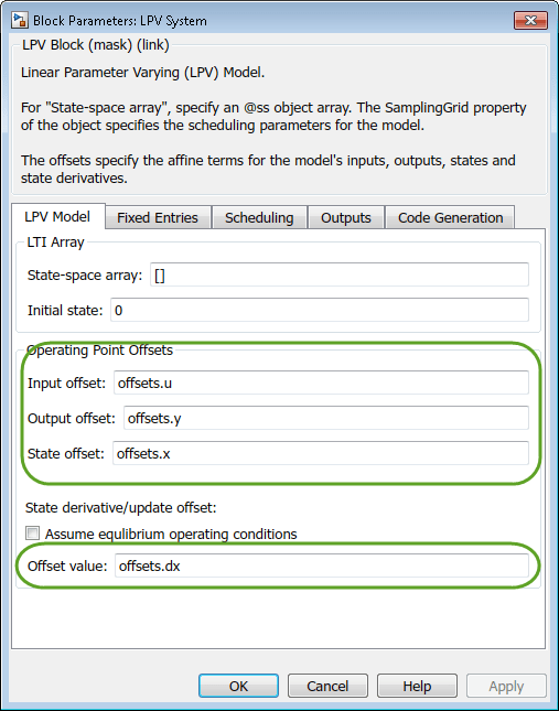 To configure an LPV System block, use the fields from offsets directly.