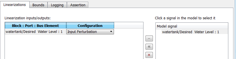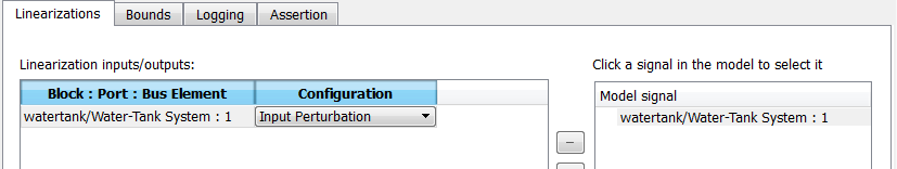 3. Click to add the signal to the Linearization inputs/outputs table.