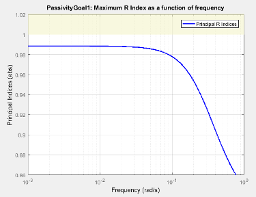 where ρ is the minimum output passivity index and ν is the minimum input passivity index specified in the dialog box. Rmax is fixed at 106, included to avoid numeric errors for very large R.