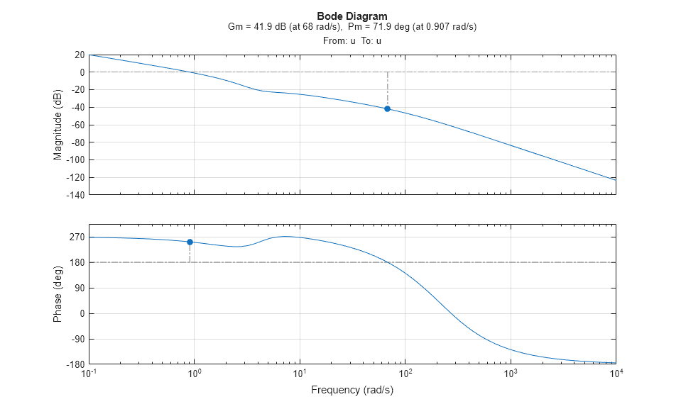 You can also perform open-loop analysis, for example, compute the gain and phase margins at the plant input u.