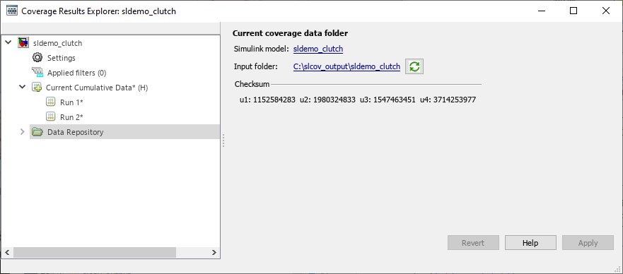 You can view the current data results summary from within the Results Explorer or click Generate Report to create a full coverage report. If you do not make any changes to your model after you collect coverage, you do not need to re-simulate the model to generate a new coverage report. For more information on coverage reports, see Top-Level Model Coverage Report.