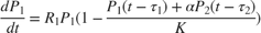 $$\frac{d P_1}{dt} = R_1 P_1 (1 - \frac{P_1(t-\tau_1)+\alpha