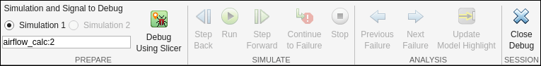 Set up the Model Slicer to debug the failed airflow_calc signal.