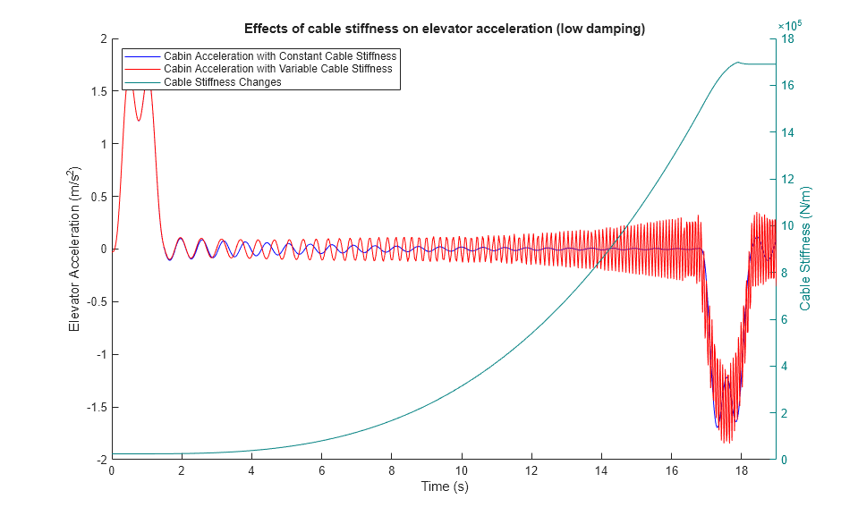 Analyze the effects of cable stiffness on elevator dynamics [1].