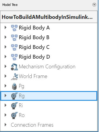 1. In the Multibody Explorer Model Tree pane, select Pg.