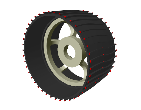 The contact between the wheels and the rigid terrain is modeled using Point Cloud and Grid Surface contact pairs along with the Spatial Contact Force block. The points on each wheel's grousers are created using the Point Cloud block.