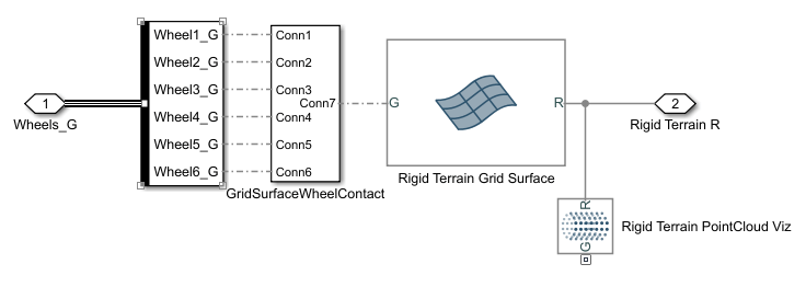 Grid Surface for modeling the rigid terrain surface. (Requires a Simscape™ Multibody™ license)