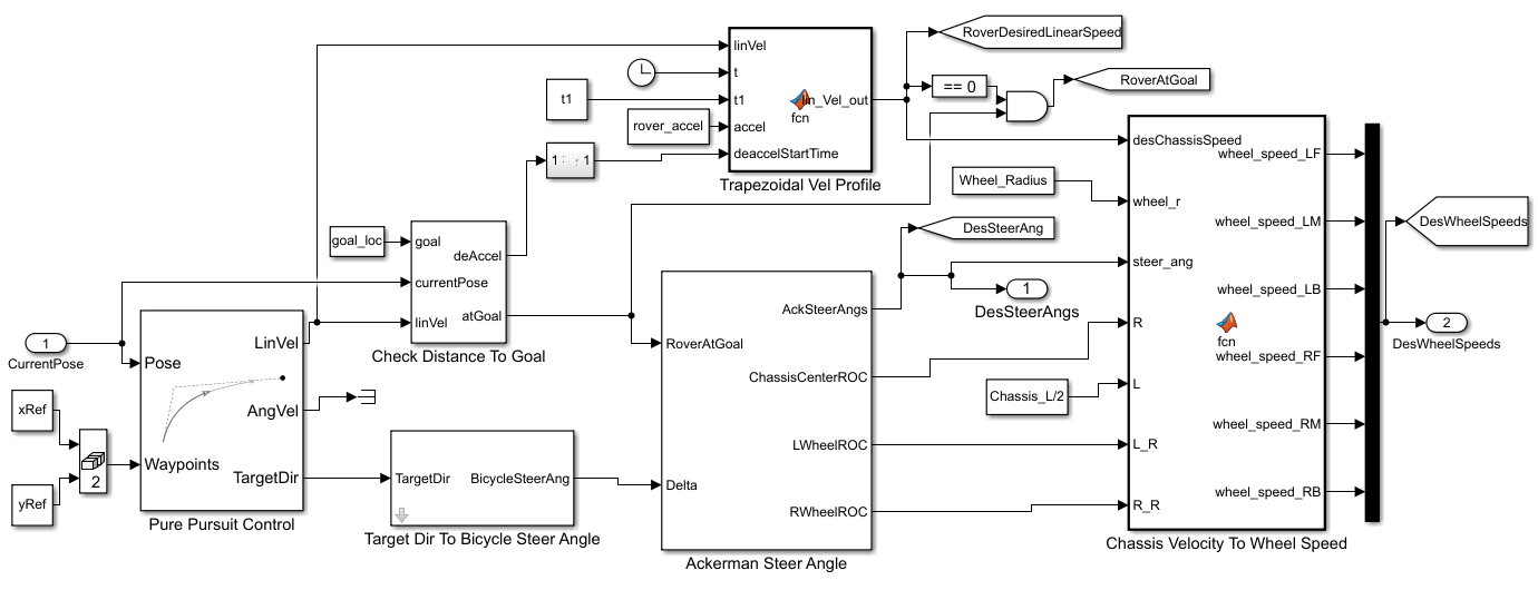 Pure Pursuit (Robotics System Toolbox) for path tracking control of the rover. (Requires a Robotics System Toolbox license)
