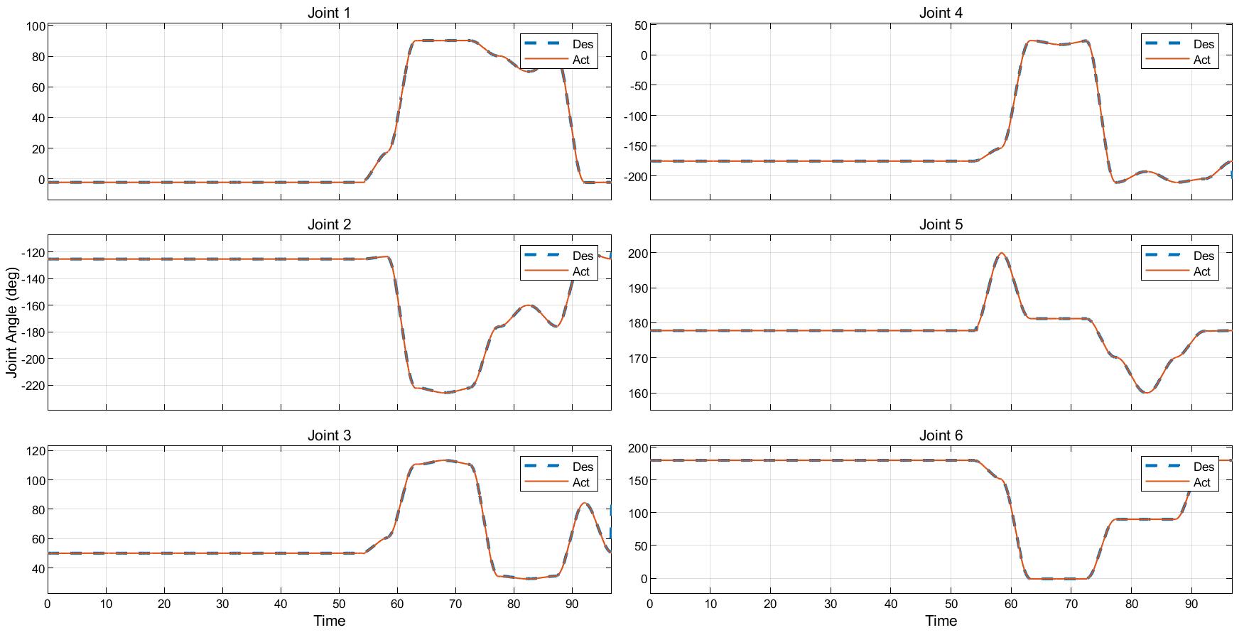 Once a joint space trajectory is generated, a PID controller is used to drive the actual positions of the actuators to their desired values.