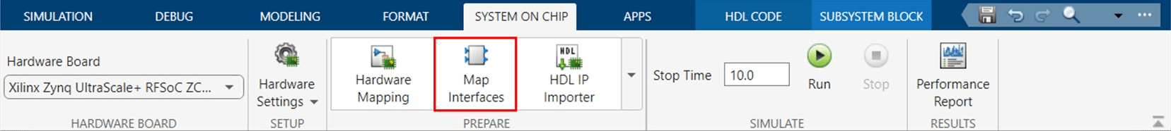 In the System On Chip toolstrip, click the Map Interface button.