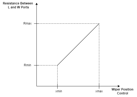 If the potentiometer resistance changes linearly based on wiper position, then the resistance between the wiper position and port L is: