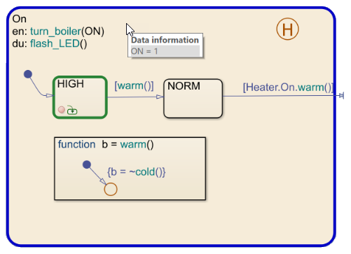 For more information, see Execution of a Stateflow Chart. |