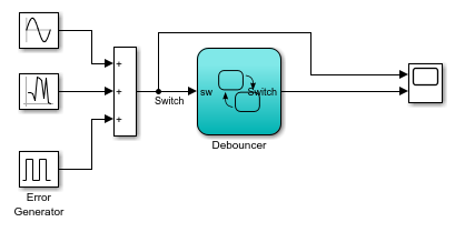 When a switch opens and closes, the switch contacts can bounce off each other before the switch completely transitions to an on or off state. The bouncing action can produce transient signals that do not represent a true change of state. Therefore, when modeling switch logic, it is important to filter out transient signals by using debouncing algorithms.