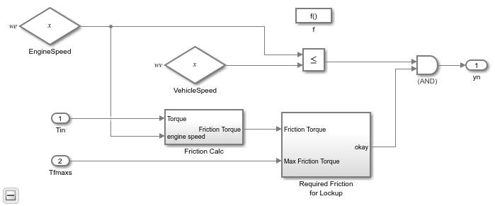 This example shows how to use Simulink based states inside a Stateflow® chart to model a clutch system. For a detailed explanation of the physical system, see Building a Clutch Lock-Up Model (Simulink).