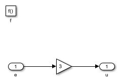 In the P state, the Simulink® function p_control implements a proportional control strategy with a gain of 3. When this state is active, the steady state gain of the closed-loop system is 3/4 = 0.75, which results in an error of 0.25.