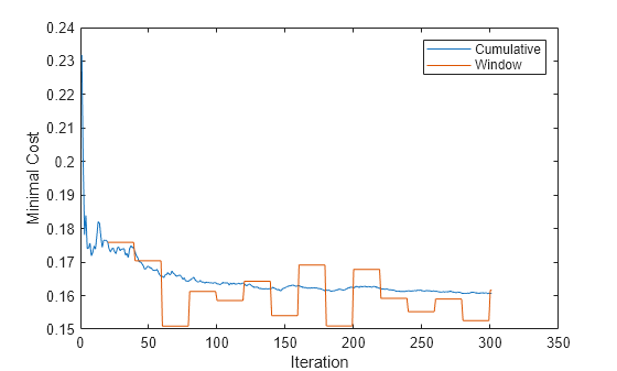 figure plot(mc.Variables) ylabel('Minimal Cost') legend(mc.Properties.VariableNames) xlabel('Iteration')