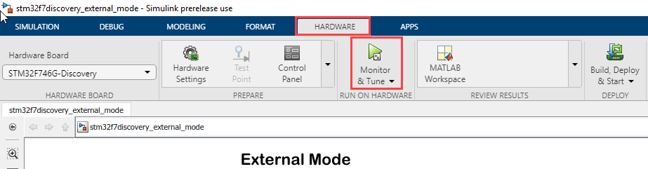 In this task, you will run the stm32f7discovery_external_mode model.