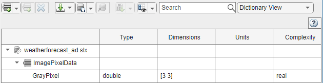 The Weather Satellite Images area contains the action node Satellite Image that simulates continuous generation of grayscale images depicting cloud cover over a certain region. Grayscale images are represented by a 3-by-3 matrix assigned to the structure GrayPixel in the Types Editor.