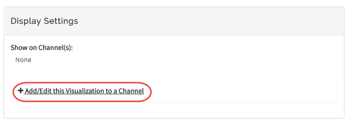 6) Optionally, you can add saved visualizations to your channel. In Display Settings, use the plus sign next to Add/Edit this Visualization to a Channel to expand the channels list.