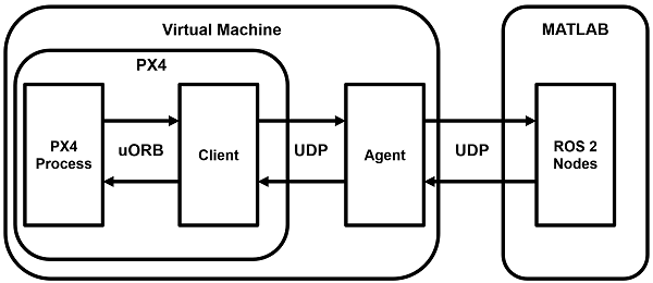 node = ros2node("/control_node"); % General information about the UAV system controlModePub = ros2publisher(node,"fmu/in/offboard_control_mode","px4_msgs/OffboardControlMode"); statusSub = ros2subscriber(node,"/fmu/out/vehicle_status","px4_msgs/VehicleStatus","Reliability","besteffort"); timeSub = ros2subscriber(node,"/fmu/out/timesync_status","px4_msgs/TimesyncStatus","Reliability","besteffort"); % Sensor and control communication odomSub = ros2subscriber(node,"/fmu/out/vehicle_odometry","px4_msgs/VehicleOdometry","Reliability","besteffort"); setpointPub = ros2publisher(node,"fmu/in/trajectory_setpoint","px4_msgs/TrajectorySetpoint"); cmdPub = ros2publisher(node,"/fmu/in/vehicle_command","px4_msgs/VehicleCommand");