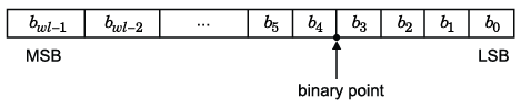 For example, a binary representation of a generalized fixed-point number (either signed or unsigned) is shown below: