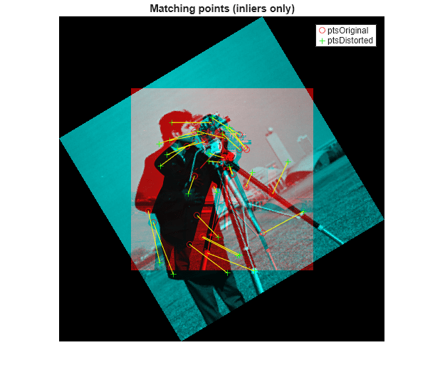 [tform,inlierIdx] = estgeotform2d(matchedDistorted, ... matchedOriginal,'similarity'); inlierDistorted = matchedDistorted(inlierIdx,:); inlierOriginal = matchedOriginal(inlierIdx,:);
