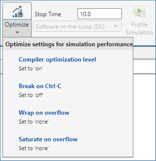 It is recommended to optimize model settings for optimal simulation performance. To accept the proposed model settings, on the Multicore tab, click Optimize. Alternatively, you can use the drop menu below the Optimize button to change the settings individually. In this example the model settings are already optimal.