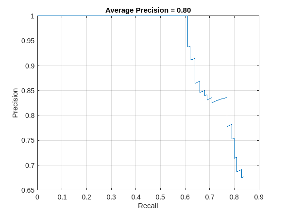 Evaluate the trained object detector on a large set of images to measure the performance. Computer Vision Toolbox™ provides an object detector evaluation function (evaluateObjectDetection) to measure common metrics such as average precision and log-average miss rate. For this example, use the average precision metric to evaluate performance. The average precision provides a single number that incorporates the ability of the detector to make correct classifications (precision) and the ability of the detector to find all relevant objects (recall).