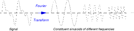 Mathematically, the process of Fourier analysis is represented by the Fourier transform: