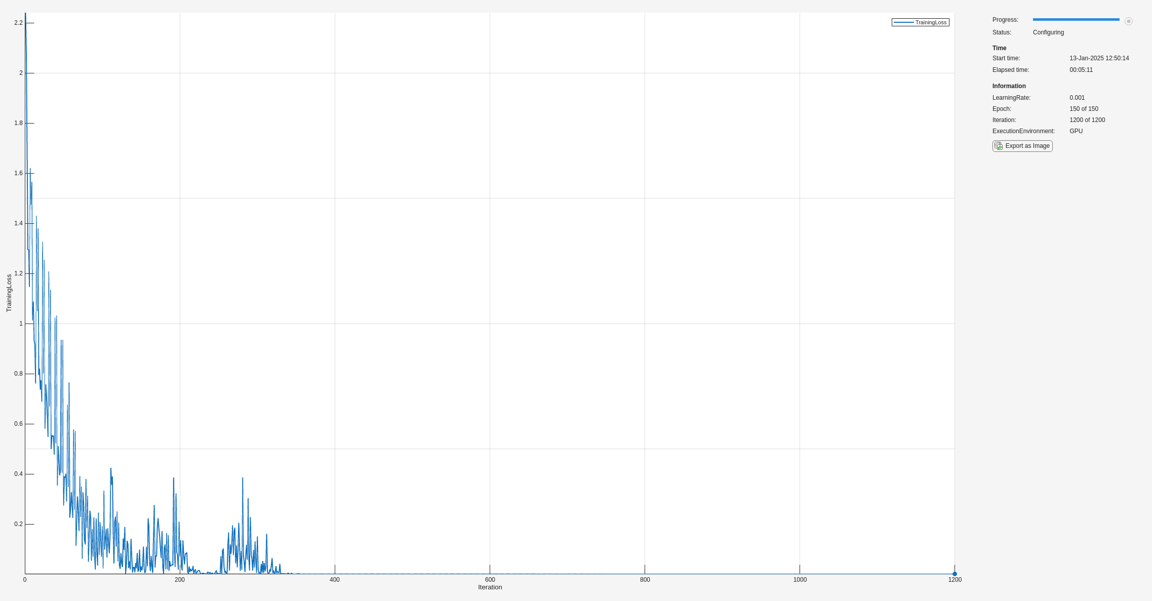 if trainEmbedder NumEpochs = 150; minibatchSize = 50; learnRate = 0.001; l2Regularization = 1e-2; end