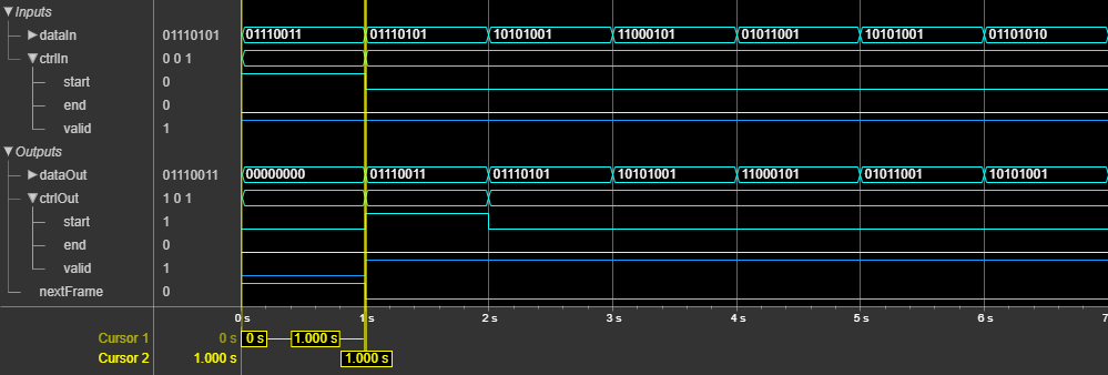 Because the latency of the block varies, the block provides output port nextFrame that indicates when the block is ready to accept new input message data. The block provides an architecture suitable for HDL code generation and hardware deployment and supports shortened message lengths.