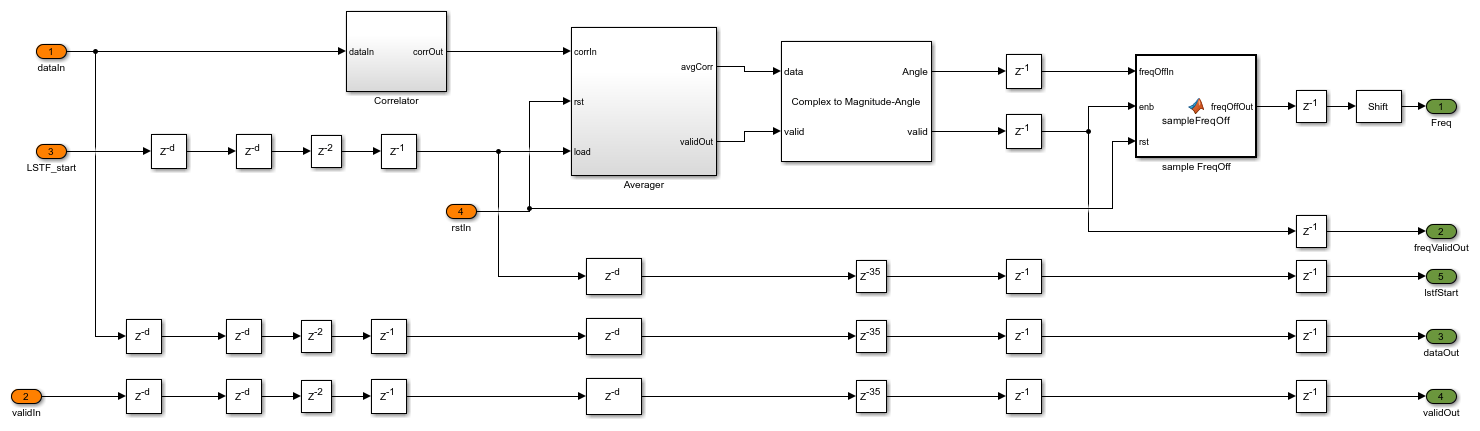 open_system([model_name '/WLANTimeAndFrequencySynchronization/Coarse CFO Estimation and Correction/Coarse CFO Estimation']);