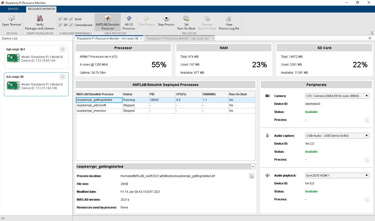 If you use or are considering using Raspberry Pi for your class, your students could benefit from using the Raspberry Pi Resource Monitor App. This app, introduced in MATLAB R2020b, will allow them to graphically configure target boards, deploy Simulink models and MATLAB functions, manage peripheral devices and interfaces, and perform common troubleshooting steps. Such an approach can simplify many of the technical challenges faced by educators who adopt a ‘Hardware at Home’ approach for their lab-based classes.