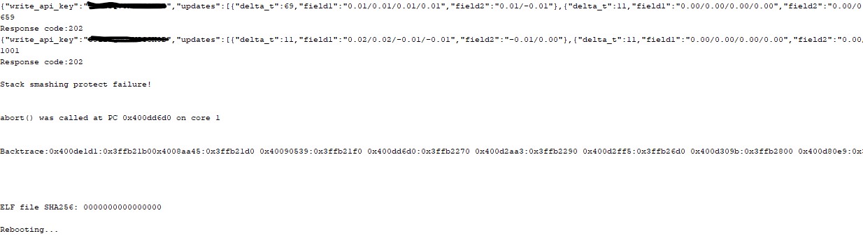 char data[500] = "{\"write_api_key\":\"59IISQVOXV5GGH0D\",\"updates\":"; // Replace